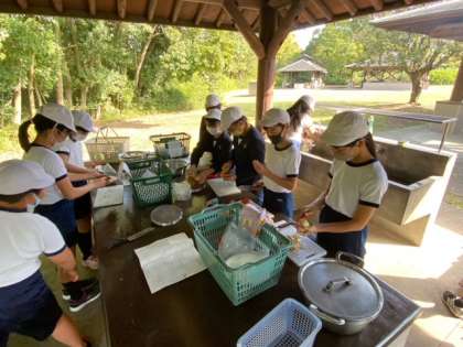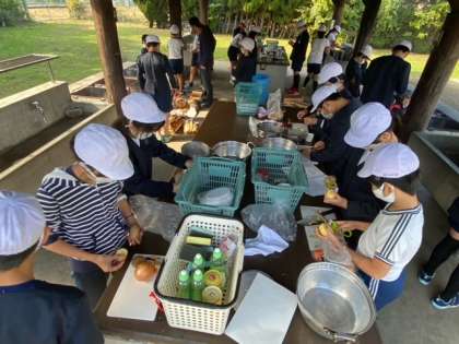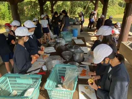 調理も開始です。「カレー」係が、野菜を切っています。慌てずにていねいに作業をしています。