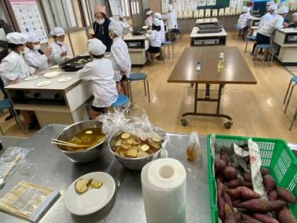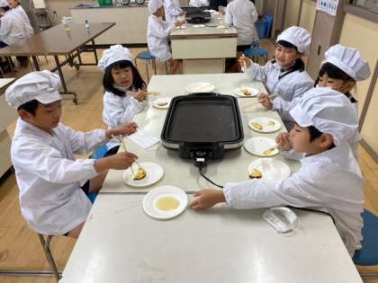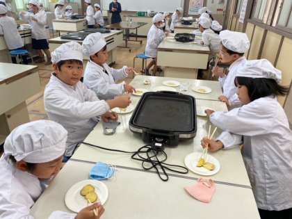 そろった班から、はちみつや塩をつけて「いただきます」をして食べました。美味しそうですね。