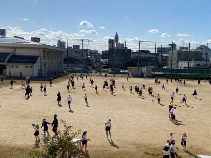 秋の心地よい空模様です。運動場で遊ぶ子どもたちの歓声が聞こえてきます。