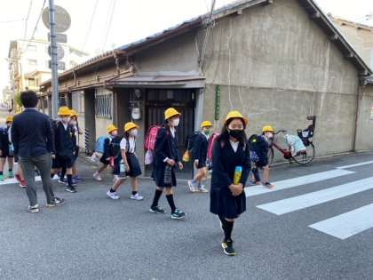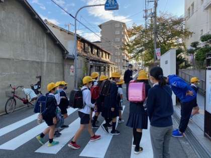 正門では、すすんであいさつをする子どもたちの姿が見られました。