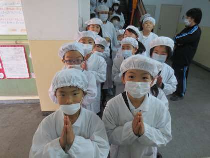 どの学級の給食当番も大きな声で「いただきます」と言ってから給食室に入っていました。そして、食器・牛乳などをあわてないでゆっくりと運んでいました。