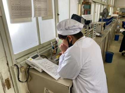 健康委員会の児童が、健康チェックの結果について放送しています。