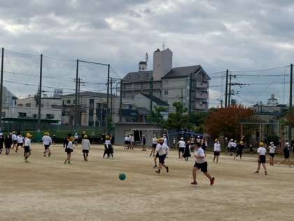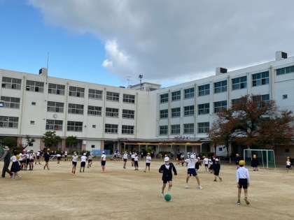 ボールで遊んでいる児童もいます。運動場の主役は子どもたちです。