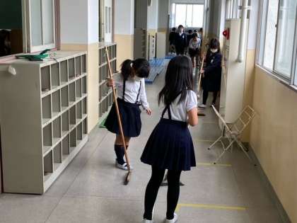 階段や廊下・教室を、班員で協力して掃除をしています。きれいになりました。