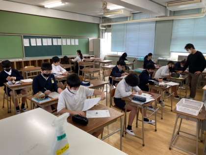 2組の算数科で、少人数授業です。「比例と反比例」の単元です。比例の式について考えています。頑張って理解しようとする姿勢が表れています。