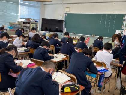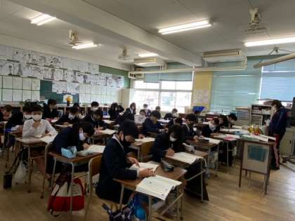 1組の国語科で、「世界に向けて意見文を書こう」の学習です。自分の考えや主張を決めて意見文を書きます。流石6年生、ご覧の通り、子どもたちは真剣そのものです。