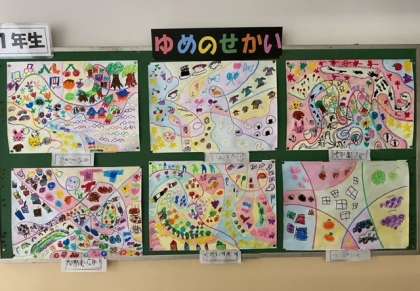 画用紙いっぱいに子どもたちの夢が詰まっています。細かいところまでよく描けています。教室にも掲示しています。