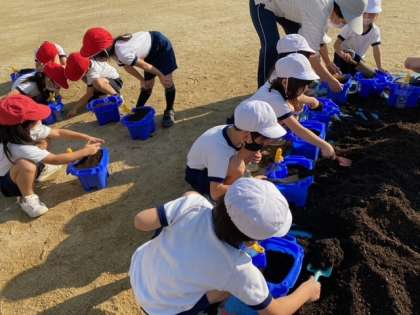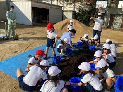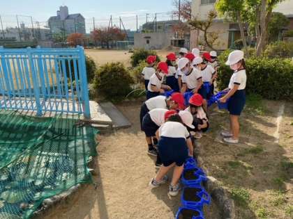 生活科で、チューリップの球根を植えました。来年、花が咲くのが待ち遠しいです。