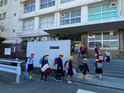 連休明け、少し冷える中、子どもたちが元気に登校してきました。