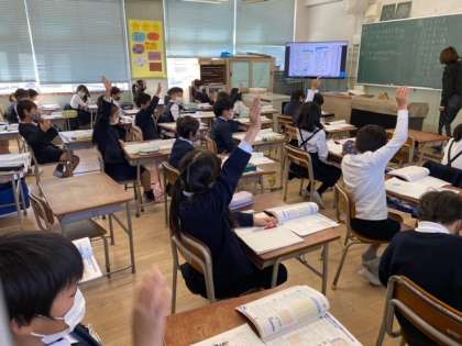 1組・2組ともに算数科で「7の段の九九を完成させよう」に取り組んでいました。