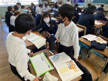 1組の道徳です。「交かんメール」という読み物を使い、学級のよいところを探しました。