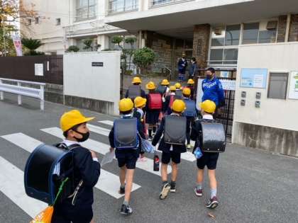 子どもたちが班で登校してきました。今日も良い一日にしましょう。