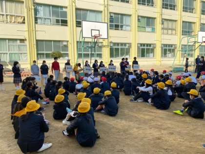 初めに中学校の先生から説明があり、その後各活動場所に移動しました。