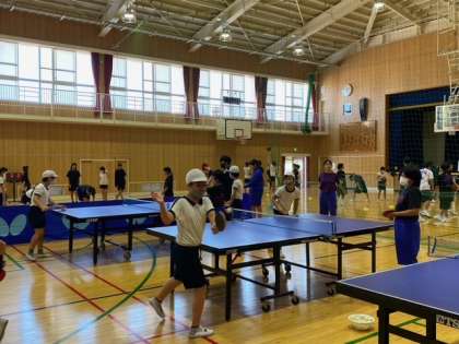卓球部の活動のようすです。サーブの練習やゲームをしました。