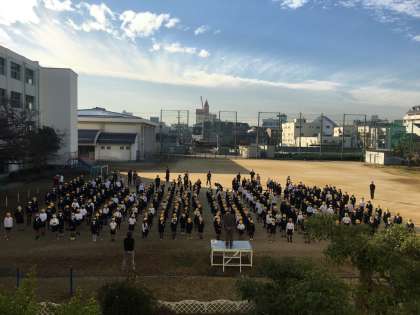 校長先生からは、「冬はラグビーや駅伝などのスポーツが盛んです。寒い時期ですが、運動に親しもう、運動を通して体力の向上に努めよう、健康維持のために手洗いなどをしっかり行おう。頭も体も使った分だけ発達します。2学期もあとわずか、元気に過ごしましょう。」と体力や健康についての話がありました。