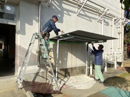 本校の管理作業員さんと営繕事務所の方々で約2週間校内の営繕作業をしてもらいました。