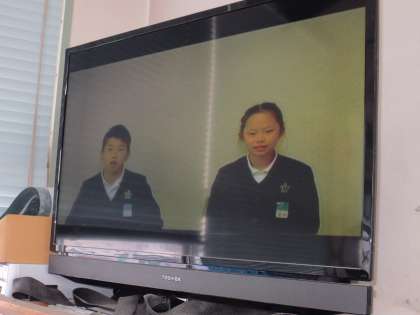 放送委員会の児童がニュースキャスターになっています。