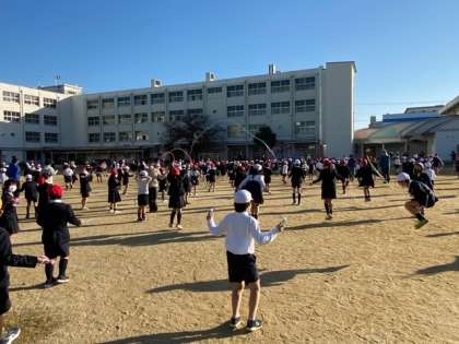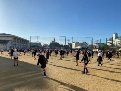 風もなく晴れた冬空の下で、しっかりと体を動かしました。体が温まり、脳も活性化されました。学習も頑張りましょう。