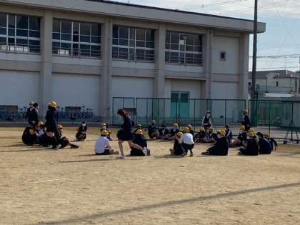 6年生の子どもたちが、担任の先生と一緒に「ハンカチ落とし」をして楽しんでいました。