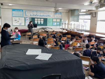 クラスメイトも静かに聞き、声の大きさや歌う姿勢など良かったところを、コメントにして書きました。