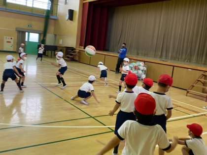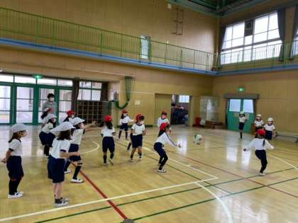 なわとびの次は、1組対2組でドッジボールをしました。ルールを守って楽しみました。体が温まりました。