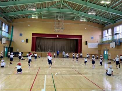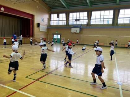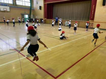 体育館でなわとびをしました。いろいろな跳び方に挑戦しました。うまく跳べるようになりました。