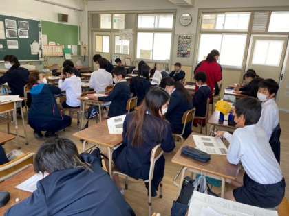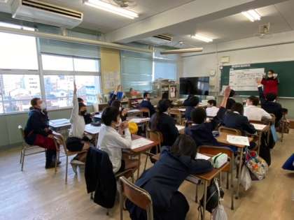先生の質問に積極的に手を挙げています。最後は、「推理しよう」にチャレンジしました。食品表示から何の食べものかを推理します。全問正解できたかな?