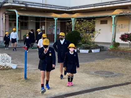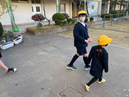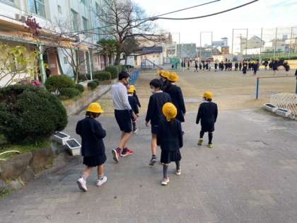 6年生の子どもたちが、初めて経験する1年生の子どもたちを教室に迎えに行き、運動場へ連れて来てくれました。頼もしいです。