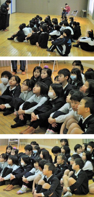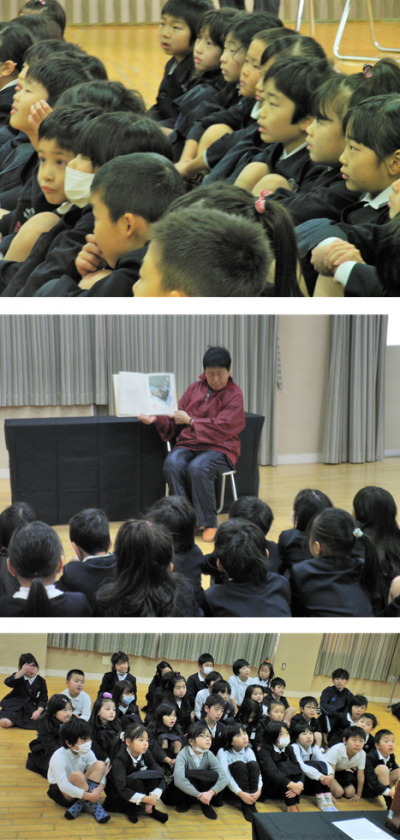 今日は、2年生に絵本の読み聞かせと紙芝居をしていただきました。