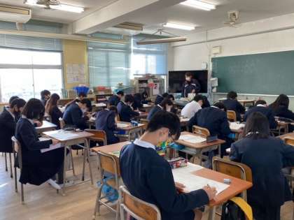 落ち着いた雰囲気の中で、社会科のプリント学習に取り組んでいます。