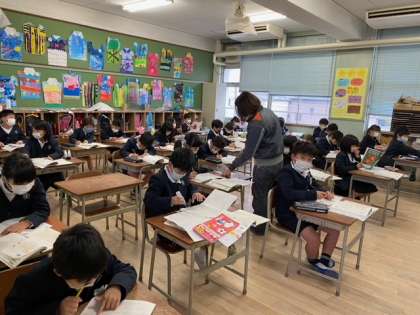 2組では、子どもたちが自分の気持ちを言葉にして手紙を書きました。「「ありがとう」を伝えよう」の単元です。