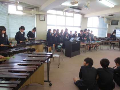 2組もしっかりと練習がされていて、とても良い音が音楽室に響いていました。演奏後、代表児童が担任の今上先生にメッセージを伝えていました。