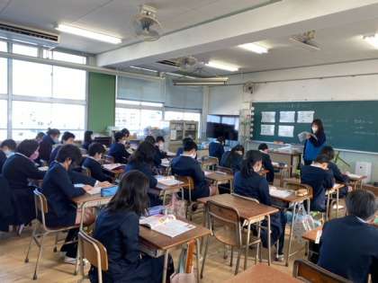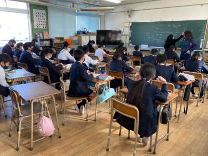 1組の英語科では、C-NETのハレン先生と一緒に、Dear 〜 で始まる「New Year Card」を作りました。