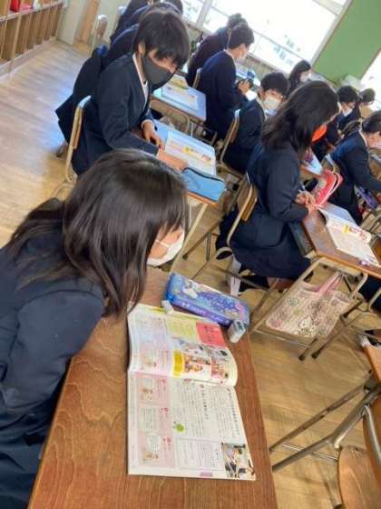 2組の家庭科では、「できるよ 家庭の仕事」を学習しました。班ごとに、クッキングやごみ捨て、洗濯物をたたむなど「自分にできる仕事を見つけよう」のテーマでまとめました。連休中「自分にできる仕事」に挑戦してください。