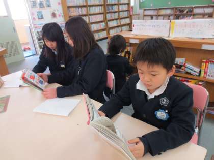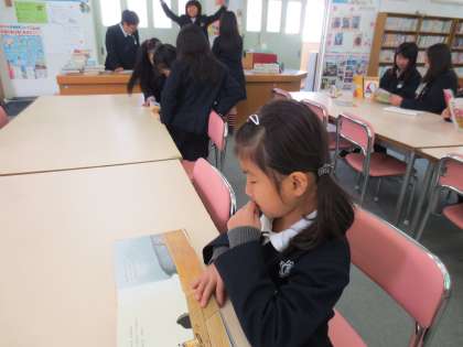 休憩時間になると運動場で遊ぶ児童が多いです。でも読書に興味をもっている児童は図書館に集まってきます。