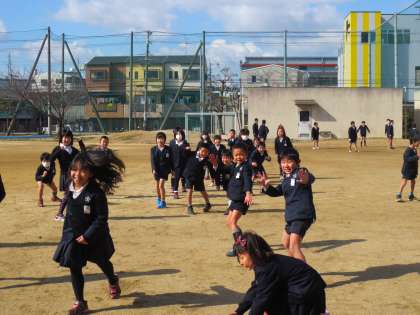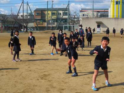 だるまさんが転んだ!・・・全員が止まる!・・・を繰り返しながら、子どもたちは前進していきます。どの顔をみてもすごく楽しそうでした。