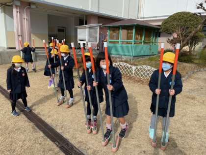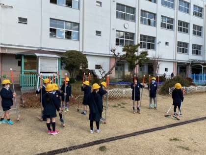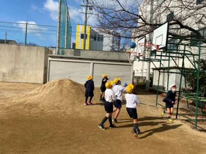 運動場では、1年生から6年生までの児童が、竹馬・鬼ごっこ・ボール遊びなど思い思いの遊びに夢中になっています。