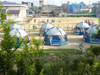 5時過ぎから8時頃まで、夜店で遊んだり、花火があったりと・・・。6年生だけは、その後、校庭に張ったテントで一晩を過ごします。夏休みの楽しい思い出に。