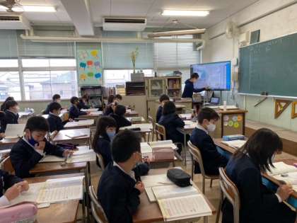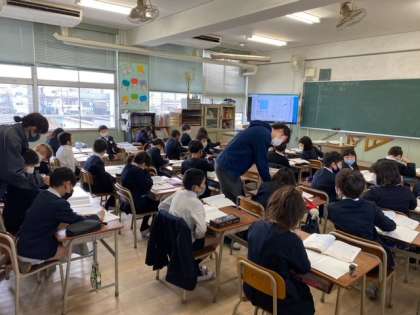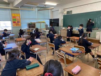 1組の学級活動です。「あそびについて」のテーマで話し合いました。手をあげて意見を発表しています。