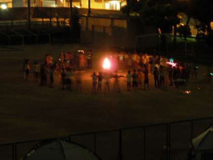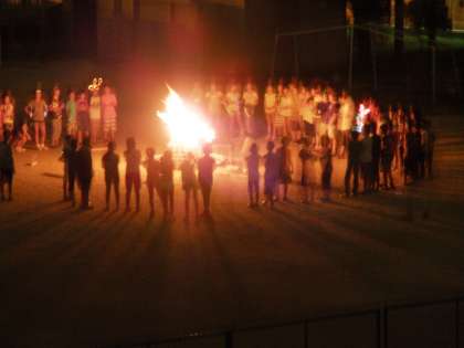 大学生ボランティアのキャンプリーダーによる楽しいキャンプファイアーの様子です。