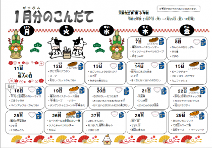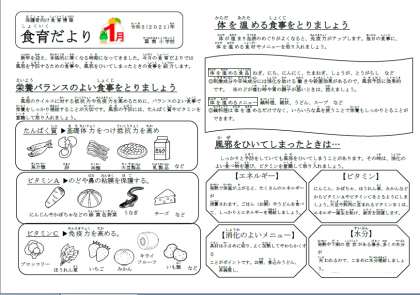 1/21 1月の給食だより・給食こんだて表・食育だより