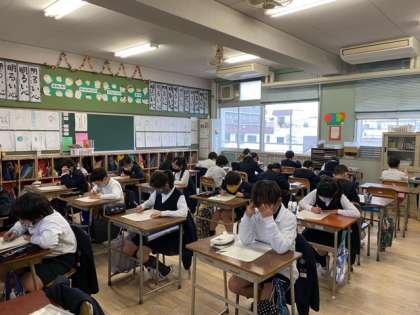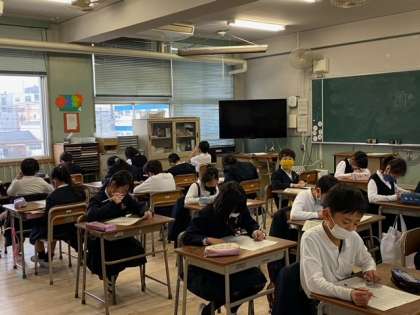 社会科のテストです。今までに学習したことを思い出して、一生懸命問題を読んで考えていました。できはどうでしたか。