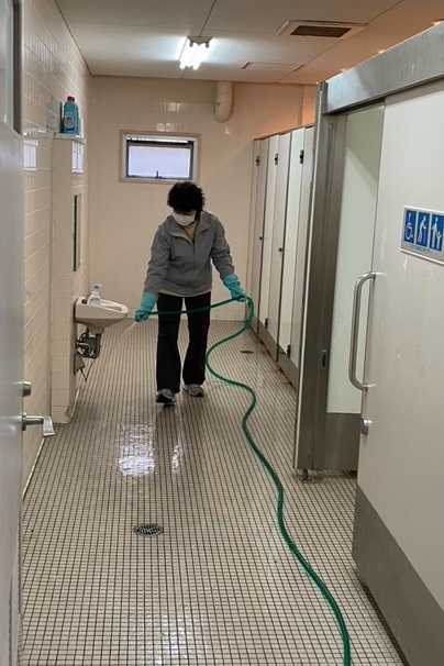 子どもたちが帰ったあと、教職員で各トイレの清掃・消毒作業を行いました。