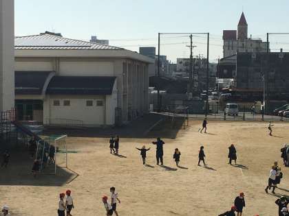 広い運動場をめいいっぱい使って、いろいろな遊びをしています。