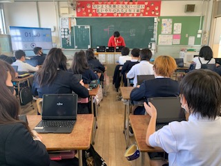 4年1組の様子です。先日入ってきた1人1台学習者用端末を、本日初めて触って、動作確認をしました。卒業まで同じ端末を使います。先生から使用についてのルール説明がありました。