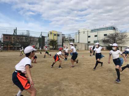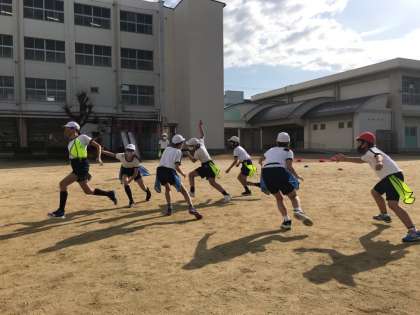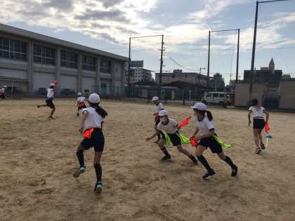 巽南小学校では今、5年生と6年生がフラッグフットボールの学習に取り組んでいます。