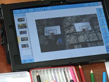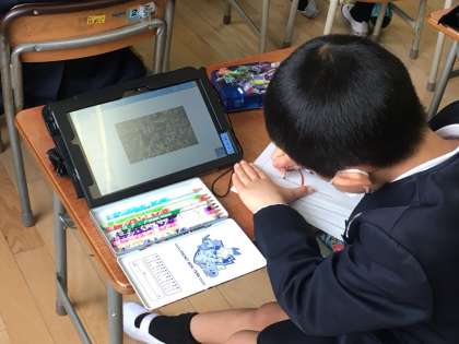 子ども達が自分で、タブレットパソコンのカメラで撮った写真を見て、絵を描いて、見つけたことを書く学習をしました。
