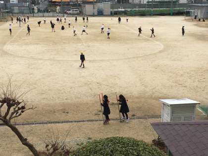 今年度より、昼休みが10分から15分と少し伸びたので、遊ぶ子どもたちが増えました。