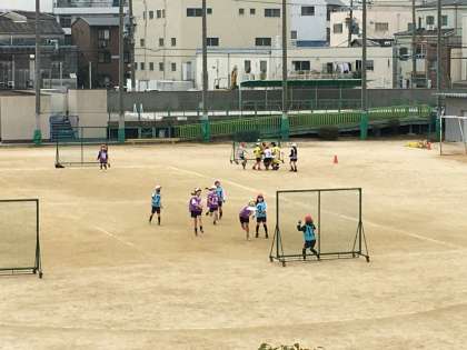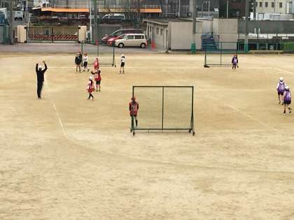 3年2組の授業のようすです。ハンドボールをしていました。チームで協力して取り組んでいました。