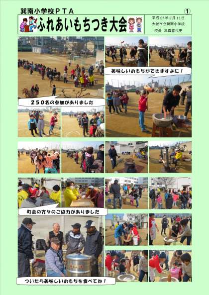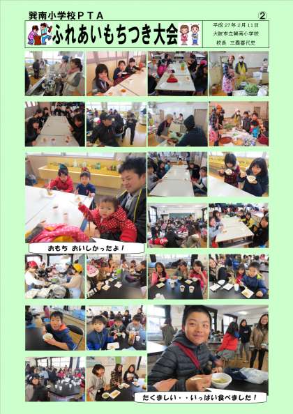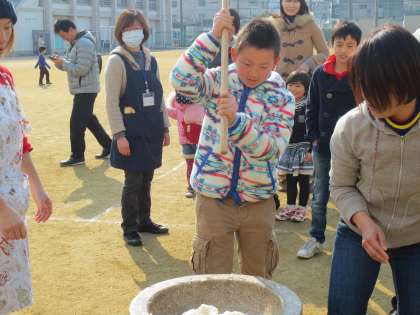 また、餅つきを終えたら人から、家庭科室・理科室で雑煮ときなこ餅を何杯も食べて、子どもたちは大満足でした。